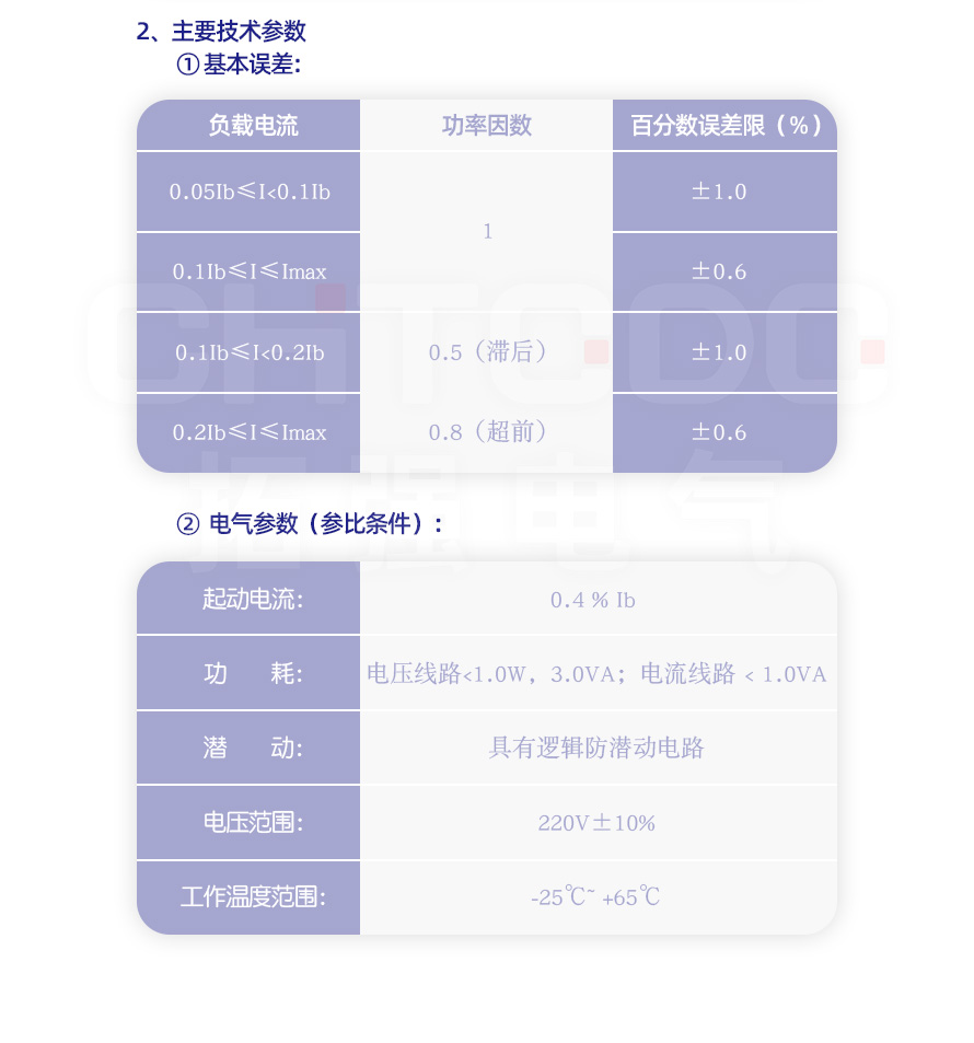 二、導軌式單相預付費電能表規格和主(zhǔ)要技術參數