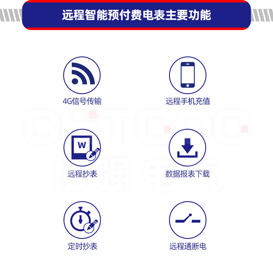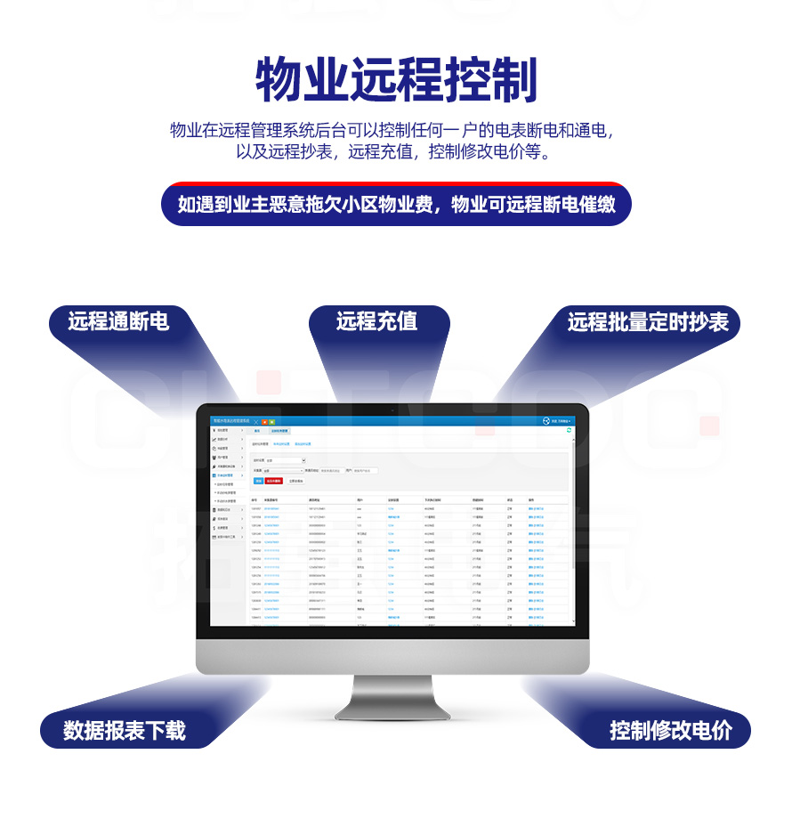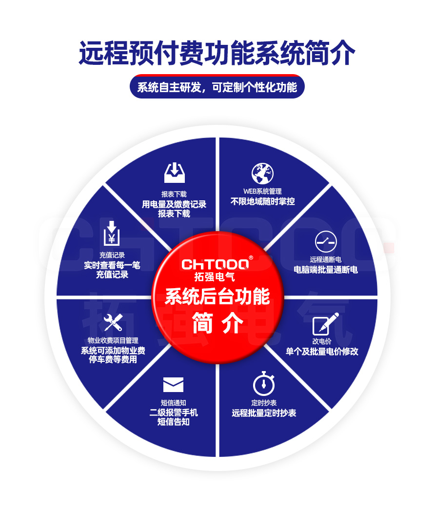 電表可與本公司遠程抄表係統和手機APP配套使用,遠程抄表管理係(xì)統具有實時抄表、定時抄表外,還提供了設備管理(lǐ)功能,如(rú)告警、餘額短信通知、遠程充值(zhí)、手機抄表、手機查詢、手機充值、預付費、後付費、自助充值機充值(zhí)、遠程拉合閘、各種查(chá)詢報表、統計報表下載等功能。
