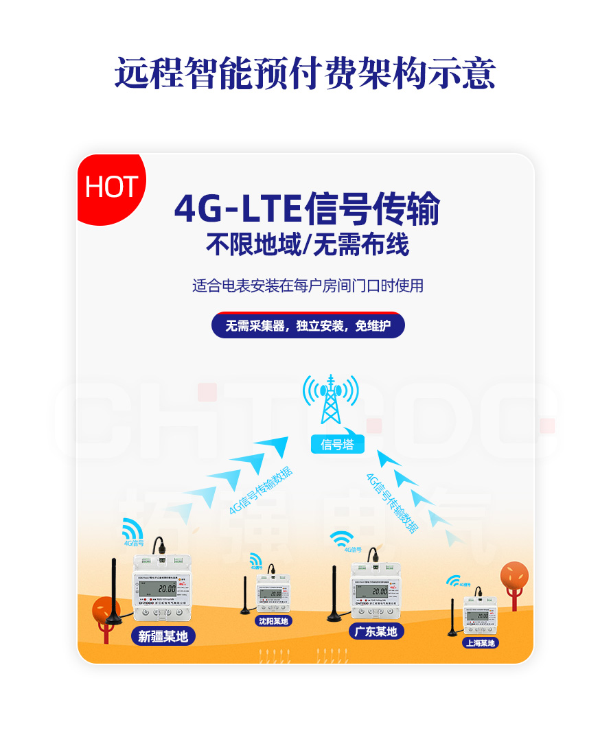該儀表(biǎo)能實現預付費,設定(dìng)日抄表,掌上電(diàn)腦(nǎo)編程及抄表等功能;並具有紅外和GPRS聯(lián)網等功(gōng)能,電表內置有(yǒu)10年流量卡(kǎ),無需網關、采集器、集中器等設備,通電即(jí)可自(zì)動聯網(wǎng),電表具有遠(yuǎn)程抄(chāo)表、遠程(chéng)控製電表通(tōng)斷電及手機APP遠程(chéng)售電功(gōng)能。通信規約可支持DL/T 645-2007《多功能電能表通(tōng)信規約》,為物業小區用戶用電自動化管理提供了必備的條件,適用於小區(qū),商(shāng)超,寫字樓,工業園,出租房,公寓,工廠內部能(néng)耗管理等場所。