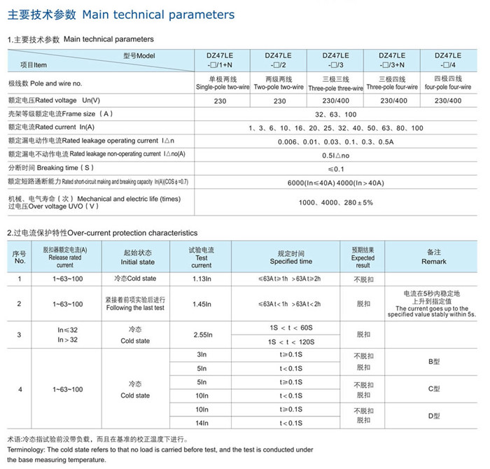 DZ47LE-100係(xì)列漏電(diàn)斷路器,適(shì)用於交流50Hz或(huò)60Hz,額定電壓單相230V,三相400V及(jí)以下,額定電流1-100A電路中,當人身觸電(diàn)或電網泄漏電流超過規定(dìng)值時,漏(lòu)電(diàn)斷路器能在極短的時間內迅速切斷故障電源,保護(hù)人身及用電設備的安全,同時具有過壓、欠壓、過載、短路等保護功能,亦可作為線路的不(bú)頻繁轉換及電動機的不頻繁起動之用。本產品體積小(xiǎo),重量輕,外形(xíng)美觀,導(dǎo)軌安裝,使(shǐ)用方便。