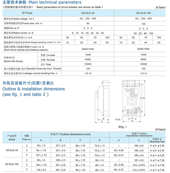 DZ15LE係列漏電斷路器適(shì)用於交流50Hz、額定電壓400V/230V,額定電流至100A,作觸電漏電保護(hù)用(yòng)。具有隔離、斷(duàn)相保護功能(néng),適用於建築行業分配電。並可用來保護線路和電(diàn)動機的過載及短路以及作為線路的不頻繁轉換及電動機的不頻繁起動之用。